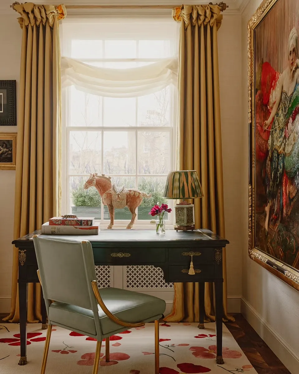 Inside a historic building on a London street lined with stucco-fronted mansions, this pied-à-terre was reconfigured from a three-bedroom layout to two. The new floor plan allowed for a spacious primary suite and an intimate jewel-box guest room. LDB reinstated period-appropriate details, including mouldings, wainscoting, and reclaimed wood parquet flooring, to honour the building’s architectural heritage. The entry hall features an intricate marble marquetry floor, showcasing craftsmanship at its finest.