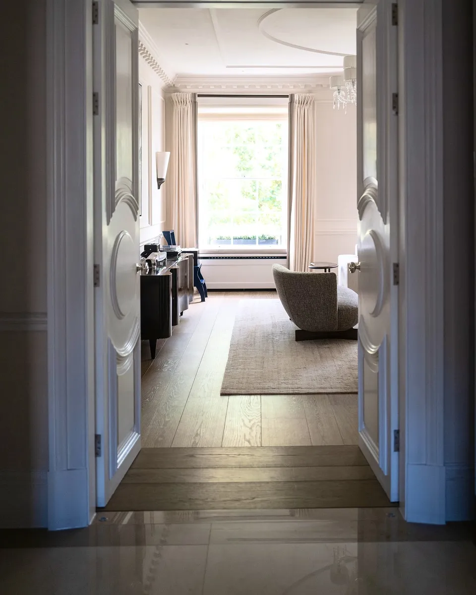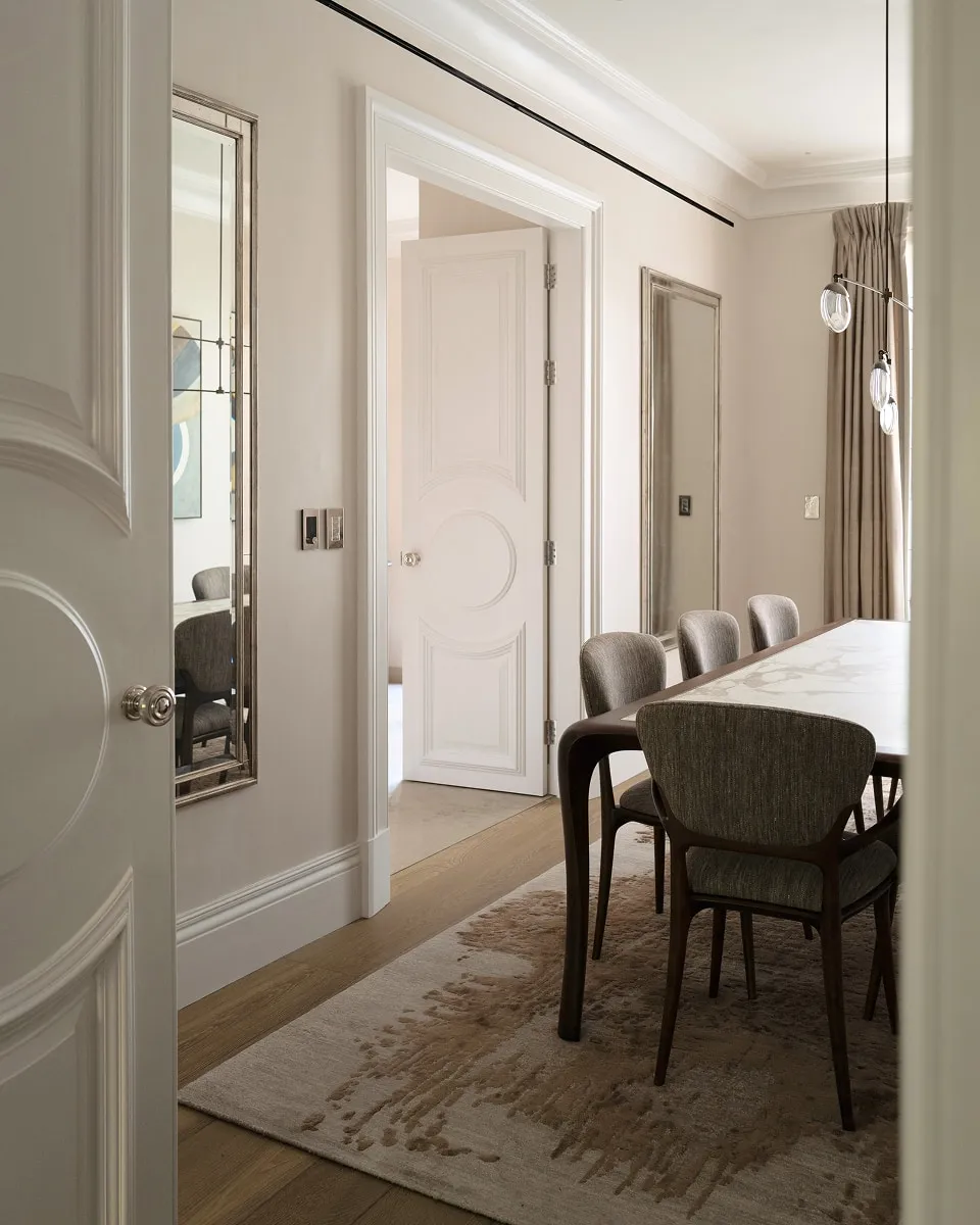In the heart of Belgravia, this listed pied-à-terre was reconfigured and comprehensively refurbished to an exceptional standard. The revised layout introduced a spacious primary suite alongside two guest bedrooms. LDB reinstated period-appropriate details throughout — including mouldings, wainscoting, windows, glazing, and the original lathe-and-plaster ceilings — preserving the residence’s architectural heritage with utmost care. The result is an apartment that embodies enduring elegance and showcases craftsmanship at its finest.